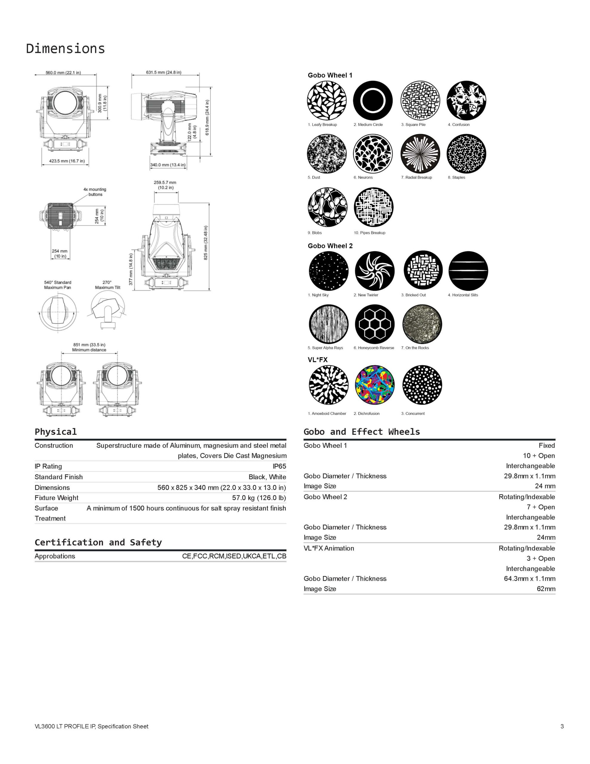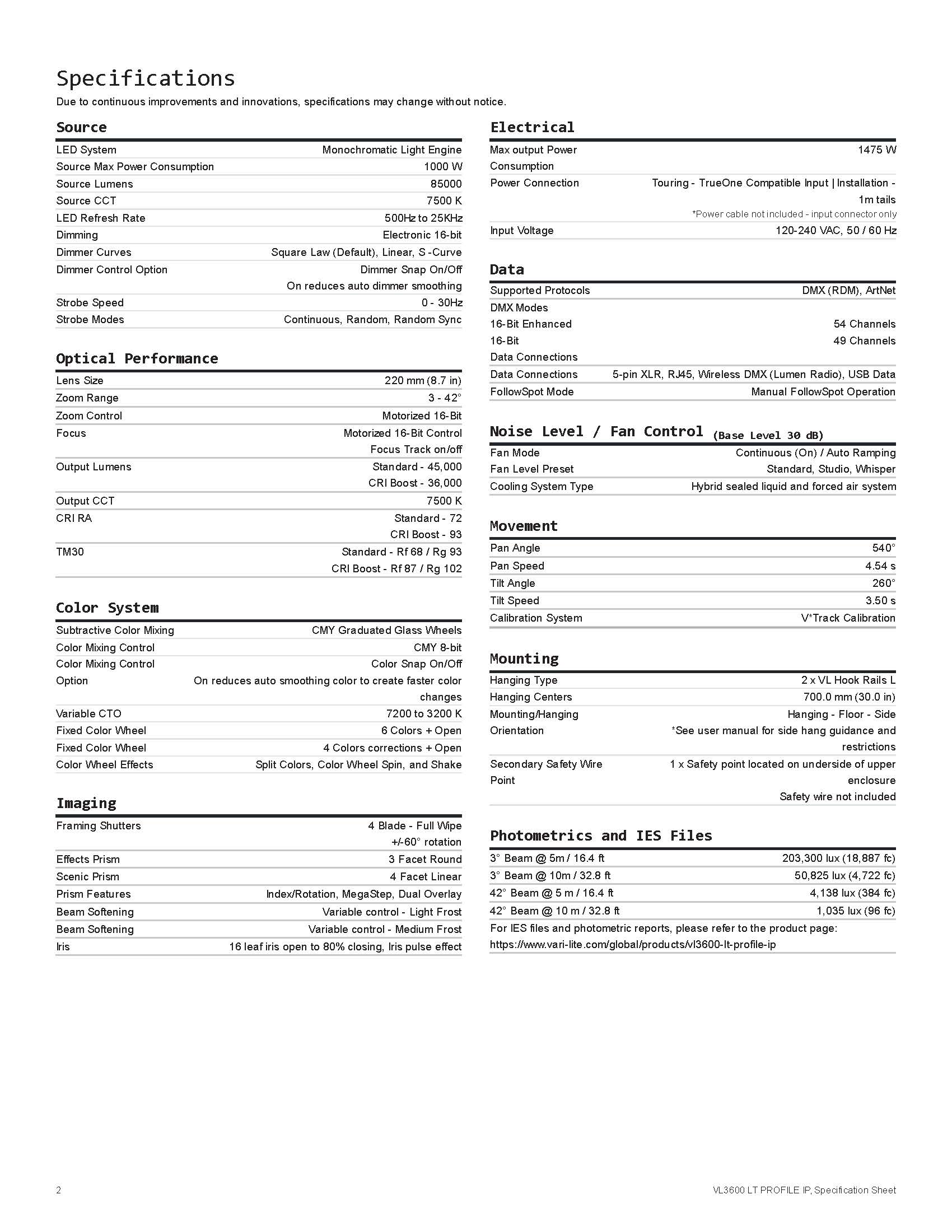 Oferece zoom de 3° a 42°, permitindo ajustes precisos para iluminação principal a grandes distâncias. - Lente frontal de 220 mm e compatibilidade total com o VL3600 Profile IP